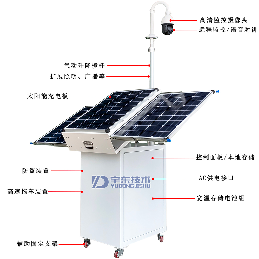 神盾X1PLUS主要有攝像機、升降系統、傳輸系統、車體等4部分組成、安裝方便、操作簡單一體化設計,機身靈活,帶有拖動輪胎,便于布防和移動;一體式伸縮支架,方便固定;監控桿體可升降、搭載高清360°旋轉的攝像頭;支持4G無線網絡信號傳輸;自帶揭蓋式顯示屏,方便本地查看;內置1組蓄電池,可續航24H(根據電池大小);機身靈活,帶有拖動輪胎,便于布防和移動前端數據移動采集設備。