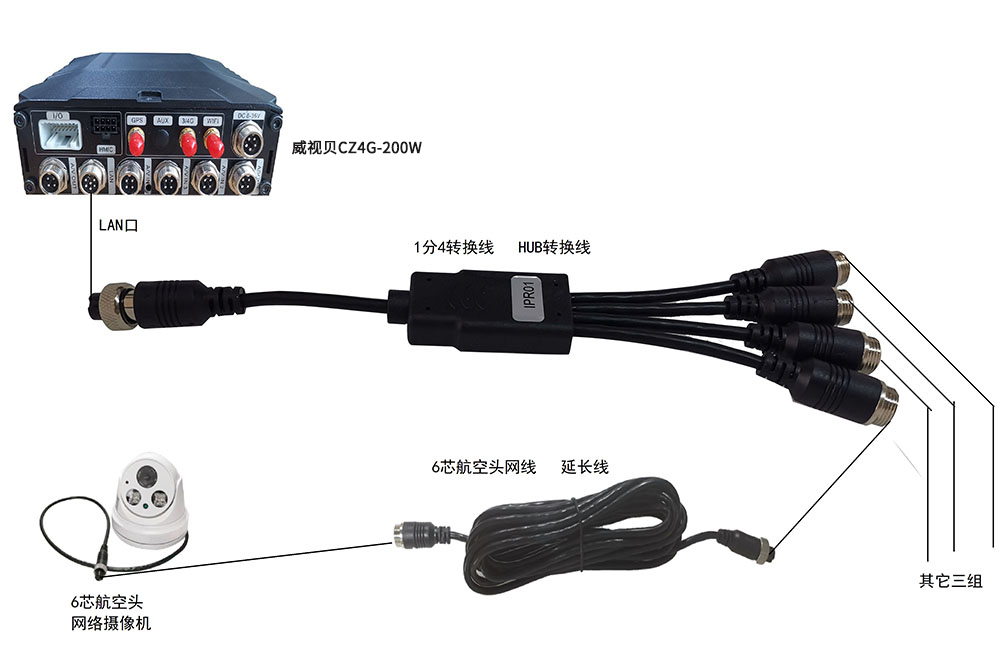 連接IPC網(wǎng)絡(luò)高清攝像機(jī)實(shí)現(xiàn)車載NVR功能,接線示意圖: