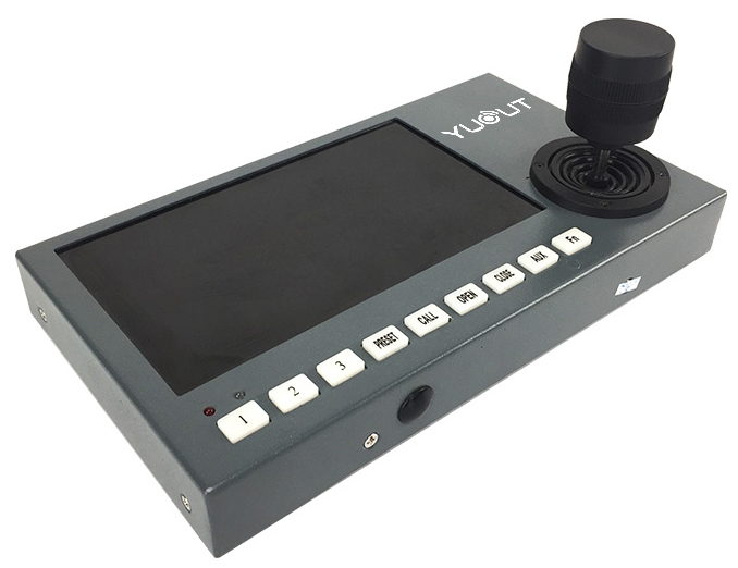 YD-KZ7001-DS多功能車(chē)載鍵盤(pán)顯示器是與變速智能云臺(tái)、解碼器、升降桿等終端接收器配套的產(chǎn)品。鍵盤(pán)顯示器內(nèi)置7英寸工業(yè)顯示屏,可接入MDVR或者M(jìn)NVR,硬盤(pán)錄像機(jī)等,解碼VGA和AV信號(hào),鍵盤(pán)顯示器的控制總線與接收器之間采用EIA/RS-485電氣接口。在不加總線驅(qū)動(dòng)的情況下,一臺(tái)鍵盤(pán)可控制多路云臺(tái)、升降桿或解碼器,鍵盤(pán)顯示器與接收器的最大通信距離達(dá)1Km。同時(shí),利用內(nèi)置的控制鍵盤(pán)可方便地對(duì)變速云臺(tái)攝像機(jī)與升降桿進(jìn)行控制,還可直接控制終端解碼器,實(shí)現(xiàn)對(duì)攝像機(jī)、云臺(tái)、鏡頭、燈光、雨刮、升降桿等前端設(shè)備的控制。
